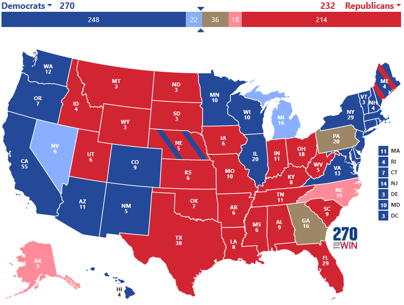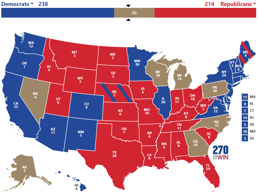 So, I'm going to bed. I expect I'll wake up around 3 to clean up some poop (not mine), and if that happens, I'll check the map. But Wisconsin, Michigan, Pennsylvania, Texas, and Florida won't have results tonight.