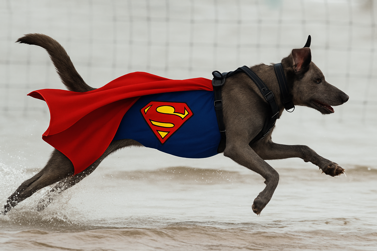 The Super Cassie image is the second attempt. I asked it to restore her fur color and texture and it wasn't able to. Also, I discovered that 3 images pretty much uses up the Free tier's compute limit, and it appears to have a 4-hour reset window.