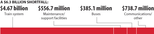 The CTA says it is more than $6 billion short of adequately modernizing its rail and bus lines, a staggering number lost in the debate as the agency lurches from one "doomsday" to another searching for the tens of millions of dollars it needs to keep operating.